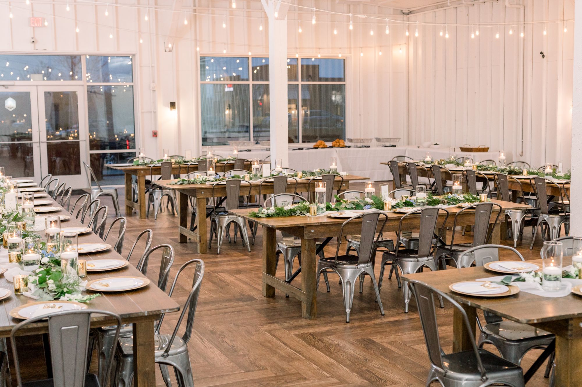 We do provide tables and chairs for your use for up to 200 guests. Our farmhouse tables do not require linens but we can help coordinate renting these if you’d like them. We offer a range of decor items like draping and hedge walls to customize your event. All of our bar packages include physical bars and plasticware. We also offer glassware as an optional add-on.